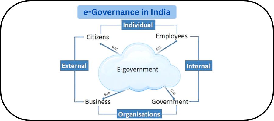 e-Governance हा शब्द दोन भागांपासून बनलेला आहे – “Electronic” आणि “Governance”. म्हणजेच शासनाच्या प्रक्रियेत इलेक्ट्रॉनिक माध्यमांचा वापर करणे. पारंपरिक शासन पद्धतीत नागरिकांना अनेकदा प्रत्यक्ष कार्यालयात जाऊन कामे करावी लागत असत. त्यामुळे वेळ, पैसा आणि श्रम यांचा अपव्यय होत असे. ई-गव्हर्नन्समुळे हे सर्व काम इंटरनेट, संगणक आणि मोबाईलच्या सहाय्याने घरबसल्या पूर्ण करता येते. उदाहरणार्थ, जन्म प्रमाणपत्र, पॅन कार्ड, मतदान नोंदणी, लायसन्स नूतनीकरण ही सर्व कामे ऑनलाइन करता येतात. त्यामुळे शासन प्रक्रिया जलद आणि पारदर्शक होते. ई-गव्हर्नन्स ही केवळ प्रशासन सुधारण्याची योजना नसून ती नागरिकांना सशक्त बनविण्याची प्रक्रिया आहे. शासन आणि नागरिक यांच्यातील दरी कमी करून “शासन लोकांसाठी आणि लोकांद्वारे” हे तत्त्व प्रत्यक्षात आणण्याचे साधन म्हणजे ई-गव्हर्नन्स होय.