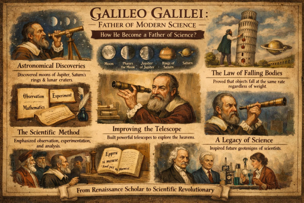 मानवाच्या बौद्धिक इतिहासात काही व्यक्ती अशा होऊन जातात ज्या संपूर्ण विचारपद्धतीच बदलून टाकतात. अशाच थोर वैज्ञानिकांपैकी एक म्हणजे गॅलिलिओ गॅलिलि(Galileo Galilei ). त्यांना “आधुनिक विज्ञानाचा जनक” (Father of Modern Science) असे म्हटले जाते. कारण गॅलिलिओने विज्ञानाचा अभ्यास केवळ तर्क, परंपरा किंवा धर्मग्रंथांवर न करता निरीक्षण, प्रयोग आणि गणितीय पुराव्यांवर आधारित केला.