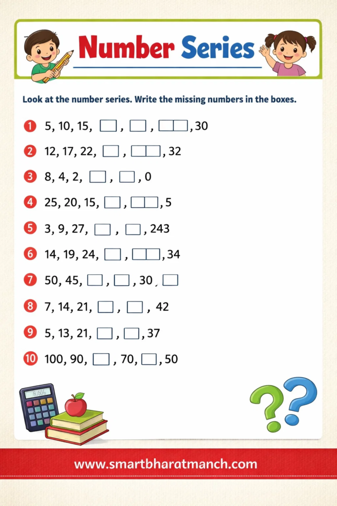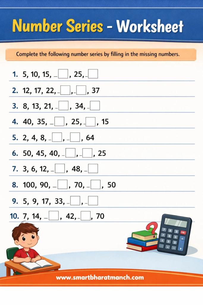 संख्या मालिका(Number Series) हा शिष्यवृत्ती परीक्षेतील अत्यंत महत्त्वाचा आणि गुण मिळवून देणारा प्रकार आहे. या प्रकारामध्ये विद्यार्थ्यांना काही संख्या दिलेल्या असतात आणि त्या संख्यांमध्ये एखादा विशिष्ट गणिती नियम लपलेला असतो. विद्यार्थ्यांनी त्या नियमाचा शोध घेऊन पुढील संख्या शोधायची असते.