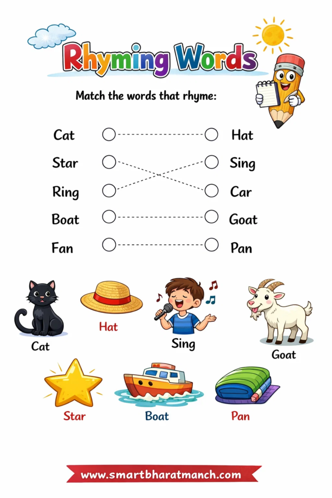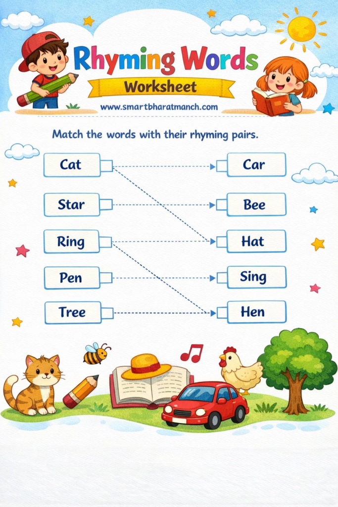 नियमित सराव, कविता वाचन आणि खेळांच्या माध्यमातून Rhyming Words सहजपणे शिकता येतात.